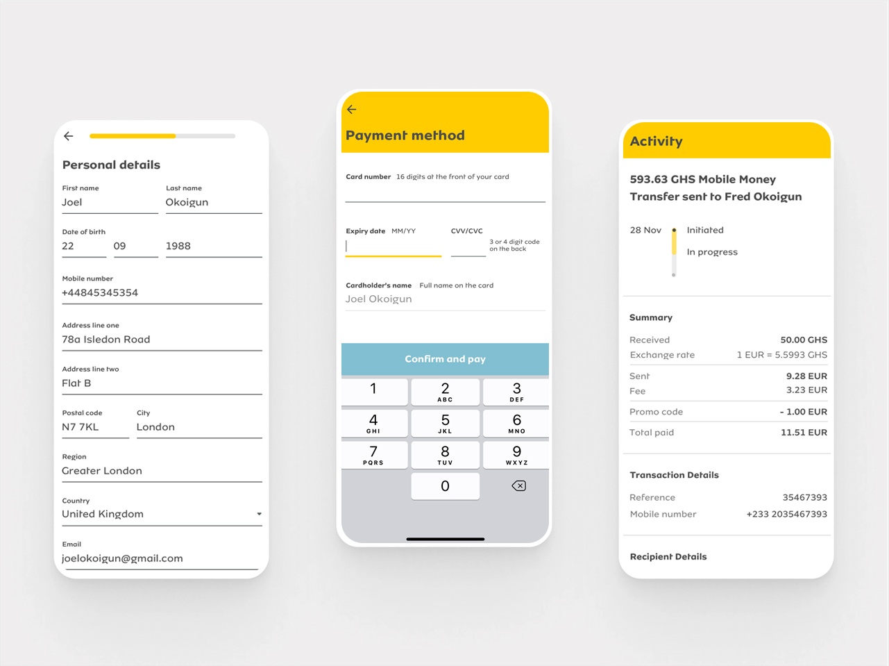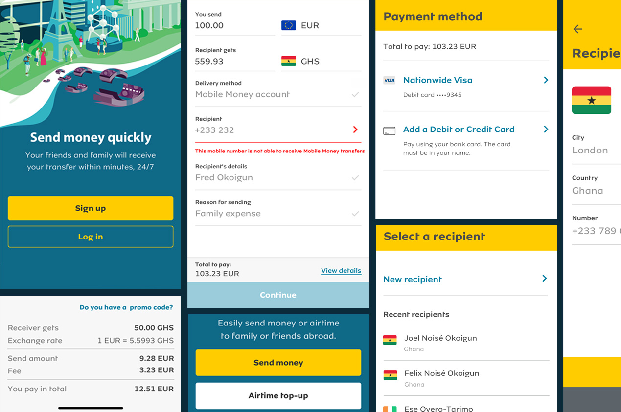 Money remittance app UI/UX